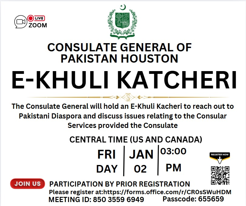 The Consulate General of Pakistan, Houston, is holding a Quote for the Construction/Dismantling of the Pakistan Pavilion (10 booths of 10 x 10 ft measurement) at the National Safety Congress and Expo from September 15-17, 2025, at the Colorado Convention Center in Denver, Colorado. Proposals/Quotations are invited from reputable firms for the provision of the following services:·       Construction/Dismantling of Pavilion.·       10 booths of 10x10ft (Measurement).Tender document details may be retrieved using the following address or by writing an official email to Pakcom.hus@tdap.gov.pkhttps://pakistanconsulatehouston.org/media/events/The Proposals/quotations in sealed envelopes or through electronic submissions must reach this office by September 10th, 2025, at 11 AM CST at the following address: Commercial SectionConsulate General of Pakistan Houston11850 Jones RoadHouston, Texas 77070 The Proposals/Quotations will be opened on the same day at 12:30 PM at the Consulate General of Pakistan, Houston. For any relevant inquiry, interested firms may contact the following: Phone: 001-281-890-2223 Extension -130 (Mr. Salman Raza)  Please note that the Consulate General of Pakistan, Houston, reserves the right to accept/reject any quotation as per the procurement rules of the Government of Pakistan.